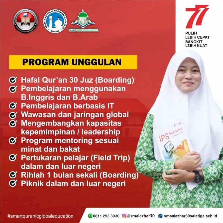 Jangan lewatkan kesempatan emas ini! Daftarkan putra-putri Anda dan raih diskon biaya masuk hingga 75 persen di SMA Islam Al Azhar 30 Salatiga.